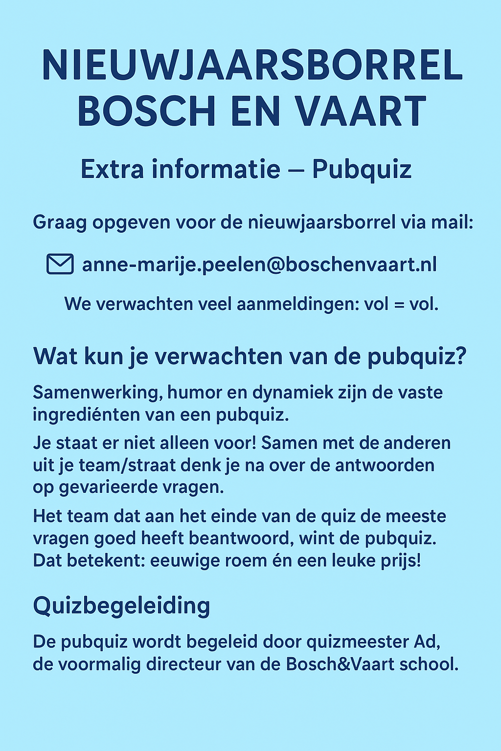 Nieuwjaarsborrel (met pubquiz): 8 februari